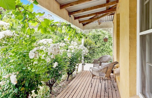 Blue Wren Cottage offers guests casual and comfortable country style accommodation located in the historic village of Berrima. Set amongst the rose bushes, this semi-attached cottage offers a generous open living space with heating, gas fireplace, dining area and a kitchenette. The front garden with a wide north-facing verandah is an ideal place to relax and enjoy your stay in the country.
