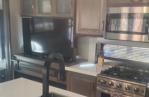 This gorgeous camper is located just 25 minutes outside of missoula. Equipped with 10 foot ceiling and granite countertops. King size bed and queen sized hideabed. Also an infared sauna close by in the barn