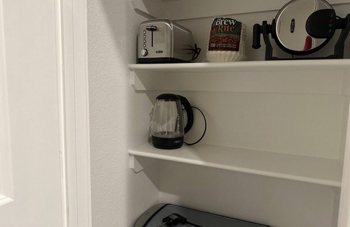 Work space is right at the corner of the living area giving guest a glimpse of outside. A large 65inch TV to entertain you with Amazon Firestick.