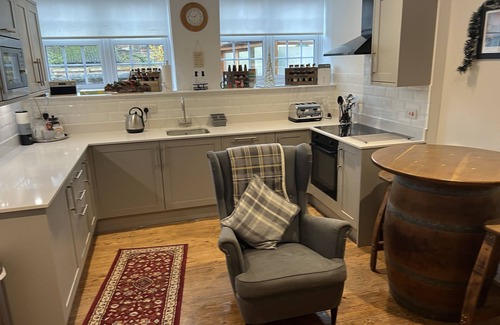 Brewers Den is a truly delightful apartment ( newly refurbished , new kitchen installed , decorated through out )found in College Lane in Masham, North Yorkshire. A two storey stone building which has been converted into apartments with the ground floor apartment known as Brewers Den, so called because it was here that the Theakston's Brewery first stored their casks of ale in the vaulted cellars beneath.