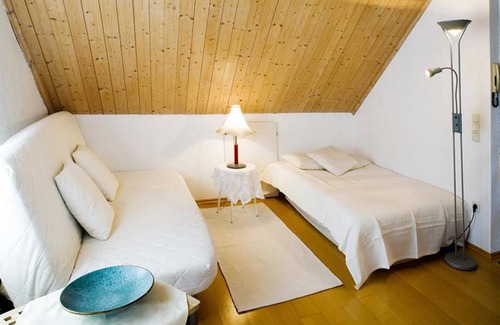 The well-furnished apartment “Ferienwohnung Bregenz 8 Top 4” is part of a holiday apartment building and situated in a central but quiet district of Bregenz, only a short walk from the beach. The 70 m² apartment extends over 2 floors and consists of a living room with 1 queen-size double bed, 2 sofa beds, a well-equipped kitchen as well as one bathroom and can therefore accommodate 6 people. Additional amenities include Wi-Fi, a washing machine, cable television, a baby cot and a highchair (on request). The communal outdoor area on the ground floor with a well-kept garden and an open terrace is perfect to start the day with breakfast, relax in the sunshine or to spend the evenings with a glass of wine. Due to the apartment’s superb location, you will reach supermarkets and restaurants after a mere 5-minute walk (500 m), while bakeries, pharmacies and the train station are a 10-minute walk (900 m) away. The nearest beach, Strandbad Bregenz, where you can bask in the sun and take refreshing swims in the midst of a wonderful mountain panorama, is 1 km or a 12-minute walk away, next to the “Festspielhaus”. Bregenz is famous for its many cultural offerings, such as the “Bregenzer Festspiele”, and after 30 km or a 35-minute drive from the apartment, you will get to the skiing areas Pfänderbahn, Alberschwende, Bödele and several others. The scenic mountainous area also offers great hiking routes and is perfect for cycling trips along the lakeshores. The island Lindau, with its charming old town centre is a 20-minute (17.5 km) from Bregenz, across the German border, and St. Gallen in Switzerland can be reached by car in 40 minutes (38 km). The tiny nation of Liechtenstein is located a 50-minute drive (55 km) south of Bregenz.