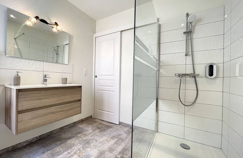 In the basement, you will find a room designed to dry your clothes, store your hiking equipment, and collect your luggage dropped off by carriers during the day. On the second floor of the structure, you will enjoy a beautiful, very bright YELLOW room with two large windows. For your comfort, it is equipped with high-end bedding (160x200), a television, ample storage, and provides access to a magnificent bathroom with a walk-in shower and separate toilet.