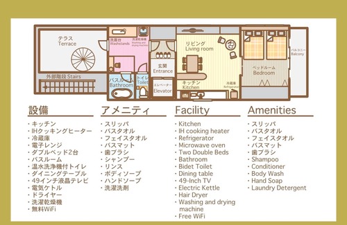 Based on the information received from our partner, the Ryuga Onsen apartment is wheelchair accessible. Likewise, there is an elevator specified as being available at the property. Specific accessibility details may be addressed in the property details section of this page.