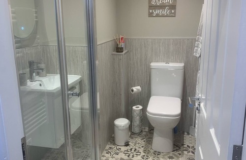 Entry is up external stairs leading to a door shared with our flat next door. Bedroom with double bed and luxury linens and comfy mattress. Shower room with electric shower. Open plan kitchen with lounge area which has a sofa bed. Washer/dryer, oven, hob and fridge freezer. Pod coffee machine and microwave.