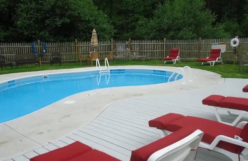 Private stylish cabin. Expanded and newly Renovated. AC WiFi. Fireplace. Heating System. Full Kitchen, and bathroom with shower. Cable TV. In ground Pool shared by 5 other cabins. All new Furniture and new Queen Bed. Mill Creek neighbors the property for Trout fishing. Minutes to great skiing at Gore Mt. Minutes to Lake George and minutes to other Lakes, and Whitewater rafting and hiking.