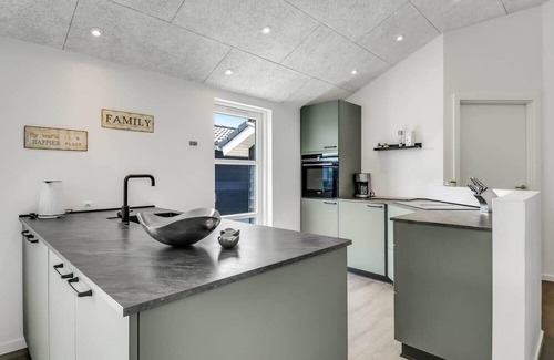 This vacation apartment in Skaven Strand, Vestjylland, provides a comfortable retreat for up to 8 adults and 2 pets. Spanning 120 m², the well-designed space features an open kitchen equipped with modern appliances, including a dishwasher, oven, microwave, refrigerator, and coffee machine. The interior is child-friendly, complete with a high chair and children's bed, ensuring a welcoming environment for families.