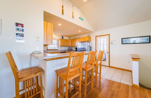 Upper Level: Master Bedroom w/Queen w/Flat Screen TV/Direct TV Service, Great Room w/Direct TV, Sliding Door to Deck, Dining Area seats 8, Kitchen w/Breakfast Bar seats 4, Sun Room w/Access to Deck w/Ocean Views, Wrap Around Desk w/Table.