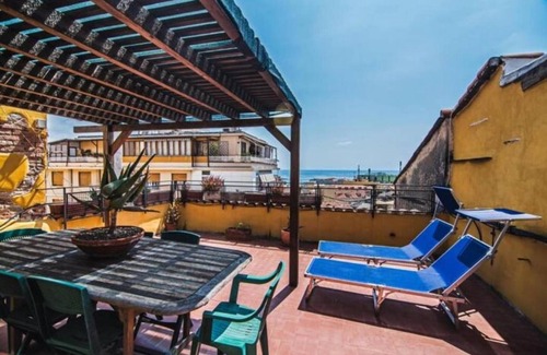 Climb up to the terrace overlooking the coastal city, where sun loungers await and a lovely view of the sea unfolds before you. It is a perfect spot for relaxation and is also set up for outdoor dining, allowing you to enjoy meals amidst the refreshing sea breeze and stunning views.