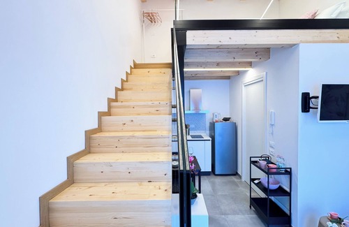 Ca Teresa Petalo is a delightful tourist location located near the suggestive Lusenzo lagoon, in Sottomarina. The apartment is located on the ground floor and immediately impresses with its unique style, a perfect balance between modern design and traditional warmth. The interiors have a modern line, where materials such as glass and wood intertwine harmoniously, creating an elegant yet welcoming atmosphere. A wooden staircase leads to a lovely loft with a double bed, embellished with exposed beams, ideal for an intimate and relaxing stay. The living area consists of a small equipped kitchen, perfect for preparing breakfasts, lunches and dinners in complete autonomy. The sofa bed allows moments of relaxation in front of the TV, making the space comfortable even for families or small groups. The modern and functional bathroom is equipped with a spacious shower, bidet, sink and toilet, with attention to detail to ensure maximum comfort. Ca Teresa Rubino is the perfect choice for those looking for accommodation with a contemporary taste, immersed in the tranquility of the lagoon and a few steps from the sea.