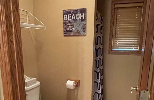Take a walk down the gravel path to the bridge that takes you to the island. On the island you’ll find a sand volleyball net, a beach area, and the concrete patio. Here is the best place to put in your kayak, paddle board, or even a floaty would be great! This island is shared and owned by the neighboring homes, please be respectful. There are NO kayaks/boards/floaties included with this rental. If you see any on the island they belong to the neighbors and are not for your use - please bring your own! We are at the end of the lake so you won’t get the waves or the traffic that the boats cause, a perfectly relaxing atmosphere. You can also try your luck fishing and cast off from the island. If that doesn’t work out for you, Bailey’s Ford is less than two miles away.