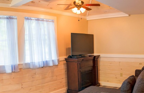 Furnished with a queen bed, a full pullout sofa bed, a mini fridge, an induction 2 burner cooktop, a toaster oven, and a coffee maker, this cabin has all your needs.