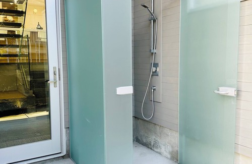 Common areas have heated concrete floors throughout, air-conditioning for the warmer summer months, 2 gas fireplaces. An open kitchen, dining & living room area with nano-style doors that convert the space to indoor/outdoor living. An exterior gas powered fire pit will keep you cozy and warm even on cooler nights while taking in the fresh ocean air. A separate media room with an extra large TV for movie nights and an office area for those that want a place to work remotely while travelling.