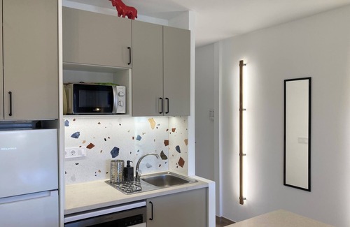Prepare a home-cooked meal in the kitchen, complete with an oven, a stovetop, and a refrigerator, as well as a coffee maker, an electric kettle, and a microwave. Connect to the WiFi, or get cozy in front of the Smart TV. Bathroom amenities include a hair dryer, a bidet, and towels. And you won't have to pack extra clothes, because you'll also have access to laundry facilities. Other amenities at this 1-bedroom, 1-bathroom rental include bed sheets, an ironing board, and air conditioning.
