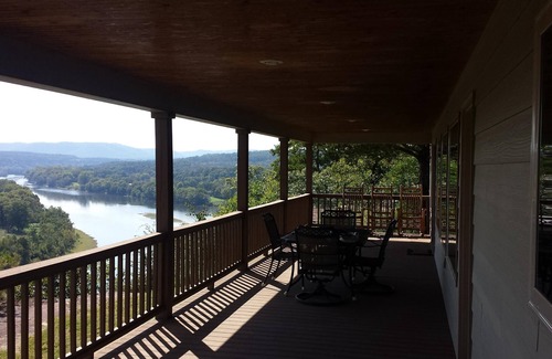 Calico Rock Cabin-302 Chessmond Ferry Rd (406 Calico St) is a 3bedroom/2bath modern cabin situated on a Bluff Lot overlooking the White River with walkable bluff frontage featuring "killer views" of the White River and overlooking a 6500 acre working cattle ranch backgrounded by the 170,000 acre Ozark National Forest,Sylamore Ranger District. This modern vacation cabin includes a wrap around deck featuring a walkdown to the edge of the bluffs, a large drive in garage, all the modern amenities such as modern kitchen with dishwasher,washer/dryer,heated whirlpool in master bath, and big screen smart tv with wi-fi. This vacation cabin is located 5 minutes from 3 trout docks with rental boats and guides for scenic touring of the river and trout fishing up and down the river from Calico Rock. The property is also located within 30 minutes of Blanchard Springs Caverns Recreational Area and 30 minutes from Lake Norfork marinas(Quarry and Jordan). Numerous fine restaurants are in the immediate and nearby area such as Printing Press Cafe(Calico Rock),Subway(Calico Rock),PJ's White River Dining(Redbanks),JO JO's Catfish Restaurant(Allison),and Angler's Restaurant(Allison).This is the perfect location to enjoy the beautiful Ozark Scenery from the bluffs overlooking the White River while being close to trout fishing on the White River,boating on Lake Norfork, and exploring the Ozark National Forest with numerous hiking trails and nearby recreational areas such as Blanchard Springs Caverns Recreational Area. WiFi available at property for your internet devices along w/Big Screen Samsung TV & 150 channel Sat TV.