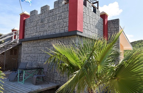 The castle apartment "Camelot" has two bedrooms, each with a double bed (180 x 200 cm), air conditioning and ventilators. It offers two very spacious modern bathrooms. On the terrace with a view of the beautiful tropical garden and on the Christoffelberg there is a fully equipped outdoor kitchen with a dining bar and a dining area for 4 people. The Camelot also offers an outdoor living room with comfortable lounge furniture. Camelot Castle also has two afternoon terraces with barbecue facilities and a castle roof to look at the stars.