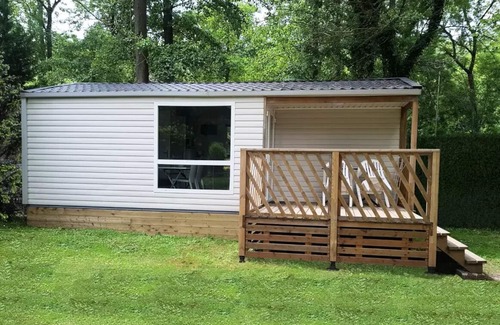 Accommodation: This mobile home has a reversible air conditioning TOP OF GAMME and flat screen TV! It consists of a first bedroom with a double bed 140 x 190 cm and a second bedroom with 2 single beds 80 x 190 cm, and a convertible sofa. There are pillows, mattress and duvet protection, a bathroom with shower, washbasin and toilet, a main room with kitchenette and dining area with bench and chairs. Equipped with a flat-screen TV, dishes, kitchenware, microwave, coffee maker, terrace, garden furniture, deckchairs, refrigerator and gas hob.