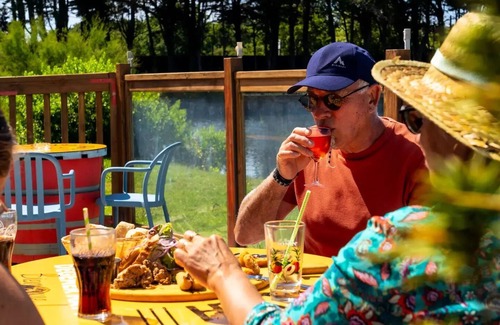 Details: City center access : 1200 m Beach Access : 1200 m Wi-Fi access : Not available in mobile homes, even with supplement. Wifi point at reception and bar at no extra charge Playground for children : with bouncy castle Wellness area : Well-being area: sauna, hammam, and whirlpool: free 1/2 hour slot, upon reservation at reception and subject to availability - open all season from 10 a.m. to 12:30 p.m. and from 2:30 p.m. to 6:30 p.m. (7:30 p.m. in July /august) Final cleaning fee : end-of-stay cleaning package: €120/accommodation (on reservation and subject to availability) - to be paid on site Number of stars : 4 Water park : open all season, from 10 a.m. to 12 p.m. and from 1 p.m. to 7 p.m. (8 p.m. in July/August). NB: Wearing swim shorts, Bermuda shorts, wetsuits or the like is strictly prohibited in the pools. Swimsuit or boxers required. The times indicated are non-contractual and subject to change. Access to the Wellness area (sauna, hammam and hot tubs) may be subject to restrictions, subject to the official health conditions in force during your stay. - Heated indoor space: open from 04/06 to 09/22 - Outdoor aquatic area: open from 04/06 to 09/22, subject to good weather conditions. Sin : seawater pond with fishing (eels and small fish) - bring your fishing equipment - no card because private pond Game room : free access Tourist tax (surcharge) : 0.65€ / day / adult (over 18 years old) - to be paid on site (2023 price) Multisports ground Sports animations Deposit (in supplement) : tarifs et règlement sur place Pets allowed Pets not allowed : Chiens de seconde catégorieInterdits Teen club Kids club Near airport : 63 km Spa Golf hammam Swimming pool Indoor swimming pool Sauna Pets Allowed : 5€ / day // animal - 2 animals maximum per rental Cats subject to camping validation, on request when booking. NAC refused). - compulsory up-to-date and leashed vaccination booklet No weight or size constraints