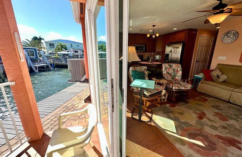 Nothing says vacation like this tropical beach house! Enjoy fishing right out the back door in this beautiful 1 bedroom 1 bath canal front home! Enjoy the views from the open floor plan! Fully equipped kitchen with dishwasher, living room has large TV with a full size sleeper sofa, washer/dryer, bedroom has king size bed! Enjoy sunsets relaxing on the back patio! All you need is your bathing suits!