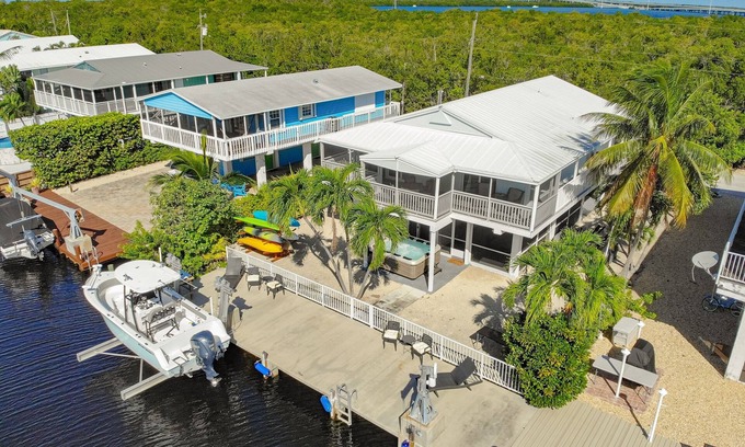 Canal-front home with private dock, hot tub, water views, kayaks, & deck is located in Key Largo. Canal-front home with private dock, hot tub, water views, kayaks, & deck provides accommodation, featuring Barbecue/Outdoor Cooking, Air Conditioner, Parking, among other amenities. This House features Barbecue/Outdoor Cooking, Air Conditioner, Parking, to make your stay a comfortable one.