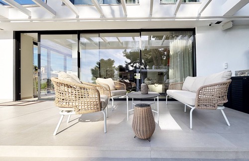 The exterior of the villa is equally impressive, with a garden, large terraces for sunbathing, a chill-out area, a rooftop with stunning sea views, a barbecue area, a small gym with training equipment, a punching bag and TRX, a laundry room with a washing machine, dryer and toilet, a shower and an outdoor shower. Private parking for two cars and a garage.