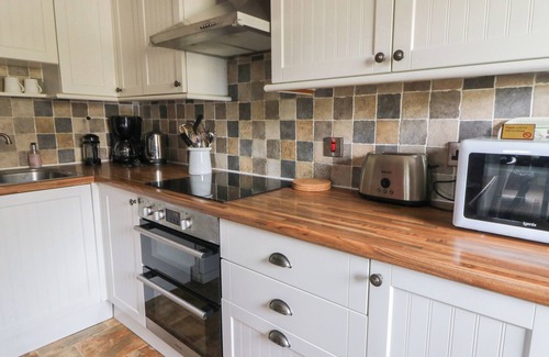 Cantref House Top Floor, a second-floor apartment, consists of a kitchen/diner with electric oven and hob, fridge, freezer, microwave, washing machine, dishwasher, and seating for two guests, a sitting room with electric fire and TV, and a snug. The bedroom is a king-size serviced by a shower room. WiFi, fuel, power, bed linen, and towels are included in the rent. Outside, there is an enclosed garden with lawn and furniture, a balcony with furniture, and off-road parking for one car. Sorry, no pets and no smoking. Within 3.6 miles you will find a shop, and within 2.8 miles a pub. Whatever the weather, a wonderful stay awaits at Cantref House Top Floor. Note: There are twenty-six steps up to this property.
