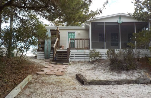 CapeSide Breeze has a very private shaded lot with pines and palms for you to enjoy. Our beach getaway comes with a screened-in porch along with a picnic area, charcoal grill, and outdoor shower. Our home is a one-bedroom with a queen bed, one bath in a well-maintained modular home with a full sofa sleeper. We have a flat-screen TV with DVD, Wifi, full kitchen but sorry no dishwasher. Our getaway is located 3 miles from the beautiful St. Joseph State Park and within walking distance of the Trading Post on Cape San Blas Road and Weber's Doughnut Shop. Cape Side Breeze has a privacy fence along the back and side of the property along with the trees this gives you a secluded feel, yet so close to everything including the beach.