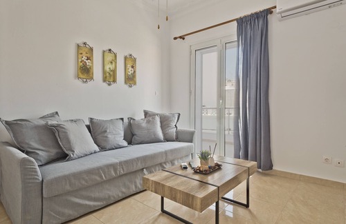 "Captain Elias Apartments" are brand new and tastefully decorated. Located in the heart of the city center, right next to the taxi stand and just 1 minute from port. Most stores and restaurants are located within 200 m. Each one features bedroom, living room, bathroom, front & rear balcony, 2 TVs, 2 air-conditioners, a fully equipped kitchen and a utility room with a washing machine and storage space.