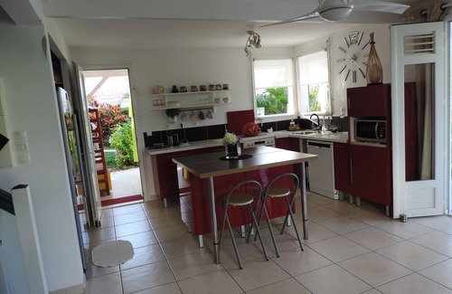 The villa is ideally located, in a quiet location, comfortable, original construction on 3 half-levels. On the ground floor the living area: living room, kitchen and an 80m2 terrace with direct access to the pool, on the 1st 1/2 level : 2 bedrooms, a bathroom with wc and an independent wc and on the 2nd 1/2 level: a parental suite with adjoining bathroom and wc. The decoration is neat. Near the sea and 4 sandy beaches, in a protected natural site, on the Caravelle peninsula.