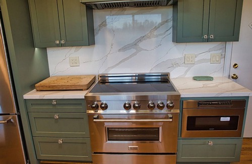 Fully Equipped Kitchen – includes stainless steel appliances, cookware, and dining essentials