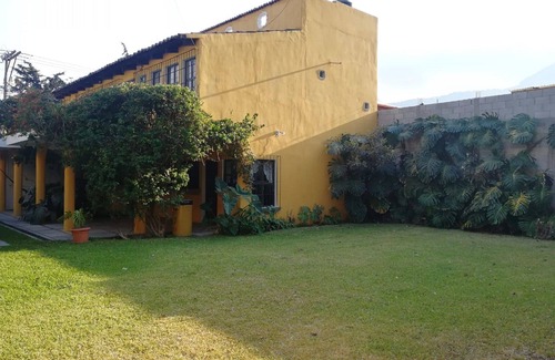 Casa estilo colonial (español) de 350 metros cuadrados de construcción, con 3 niveles, bar, sala, tv con cable, comedor, cocina, lavandería y dos baños en el primer nivel, 4 dormitorios, 2 áreas para leer y mesita para colocar laptop , dos baños grandes con bañera, 2 terrazas con majestuosa vista al volcán de agua, en el tercer nivel terraza para tomar sol. Garage para 4 vehículos dentro de la propiedad, amplio garden of 200 metros cuadrados decorado con plantas tropicales propias del lugar, deck con mesa y sillas con vista al volcán. COCINA equipada con microondas, cafetera, refrigeradora, estufa, licuadora, pan tostador, platos, cubiertos, vasos, ollas, sártenes, etc. ENTRETENIMIENTO: ping pong mesa, cricket juego, mesa juegos.