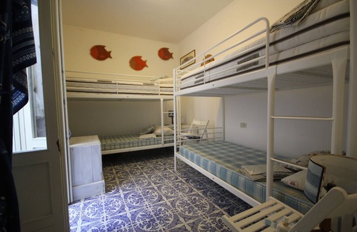 It is also easily reachable by car, 3 minutes from the center; under the house you can park easily on the public road. From the street to the garden of the house there are 18 steps (gentle). Not suitable for wheelchair users. The house is quiet and well ventilated. It was never necessary to install air conditioning. It has 3 bedrooms (two doubles and one with two bunk beds for a total of 8 beds; 2 bathrooms with shower, a large living room with well-equipped kitchenette (also with dishwasher), laundry area with washing machine, access direct to the terrace on the level of 30 square meters with a beautiful view of the Port of Ponza, a second terrace on the upper floor of 20 square meters and a small private garden of 30 square meters, on a level. We rent turnkey with household linen, dishes , pots, glasses, etc. and cleaning lady once a week.