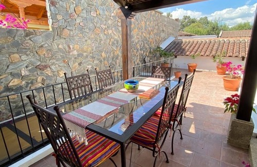 Nice relaxing and Beautiful home in Antigua Guatemala, with a capacity of up to 12 people. We have a full kitchen and laundry equipment at your disposal, hot water and heater, Fans in each room, iron, washer and dry towels, soap shampoo included . Tv cable and wifi security 24/7 Swimming pool available volcano view and more. We have a person available, should you need cleaning, for an additional price.