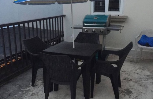Second floor two bedroom apartment with modern kitchen. Free parking for one vehicle and 5 min. from Int'l Airport. Quiet and safe neighborhood with security entrance. Easy access to everything from place.