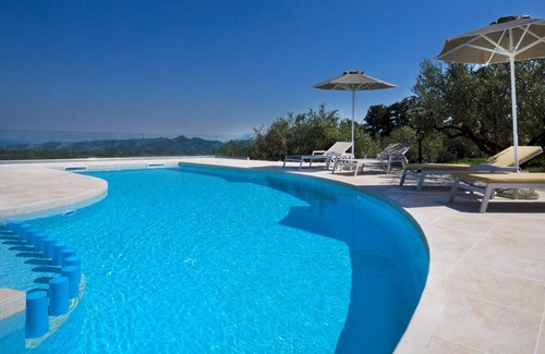 Casa Rustica is a brand new 2-bedroom Villa with a lovely private pool, designed with the life experience of the kind owner. Gorgeous sea views from the courtyard, the interior and the spacious balconies of the villa are offered. A sea view private pool with a children corner of 40 sq m, in a plot planted with olive trees, a wineyard, and cypress trees is available to explore.