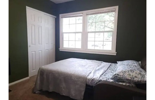 Take it easy at this unique and tranquil getaway. HUGE quarter acre lot, plenty of space for family, friends both furry and not. Rooms painted for different moods, quarter acre lot with two outdoor and one indoor fireplace. Private entry and three apple trees on site.