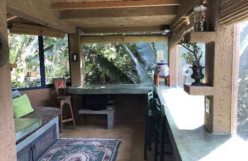Little house overlooking the lake, in a tropical forest next to a stream of crystalline water, garden with barbecue, swing in the pond, fiber optic internet, kitchen and dishes.