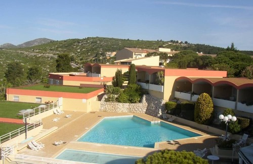 Near the Calanques, superb apartment facing south and located in a small residence with swimming pool and paddling pool. Panoramic view overlooking the Bay of Cassis.