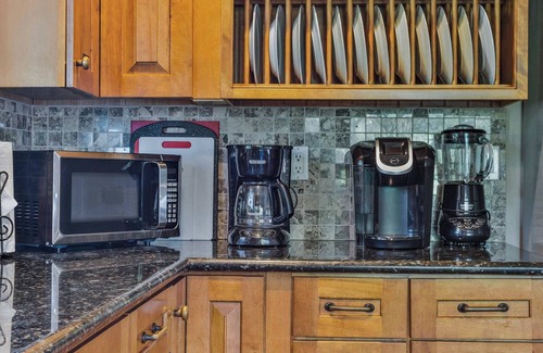 The home comfortably sleeps up to eight guests, with four beautifully designed bedrooms. Two luxurious king suites provide a peaceful retreat, while the other guest rooms—one with a queen bed and one with a full bed—offer cozy and inviting spaces. Three full bathrooms, thoughtfully designed with modern touches, make it easy for everyone to feel at home.