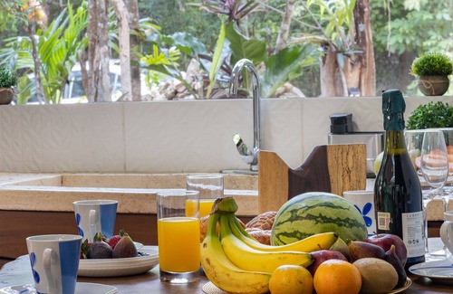 Nestled in Playa del Carmen, this 3-bedroom, 2-bathroom cabin brings it all within your reach. Fans of nature and the outdoors will love being 17 minutes by car from Playa del Carmen Main Beach and 20 minutes from Maroma Beach. Make short work of the 7-minute drive to El Camaleón Mayakoba Golf Course or the 5-minute drive to Gran Coyote Golf.
