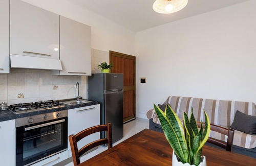 "Central Home", 2-room apartment 60 m2, on the ground floor. Tasteful and cosy furnishings: living/dining room with 1 double sofabed (140 cm, length 200 cm). 1 double bedroom. Open kitchen (oven, 4 gas rings, toaster, kettle, microwave, electric coffee machine) with TV. Shower/bidet/WC. Gas heating. Heating available only from 01.11. to 15.04. Facilities: washing machine, children's high chair, baby cot for up to 2 year olds, hair dryer. Internet (WiFi, free). Parking at the house. Please note: non-smoking house. Maximum 1 pet/ dog allowed. Private entrance, smoke alarm, fire extinguisher. IT008059B4Q6A7HH3O