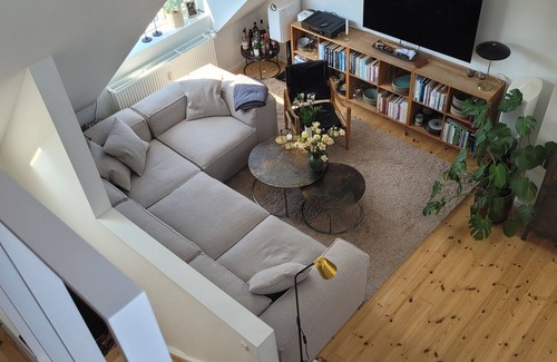 Delightful light and perfectly located penthouse apartment in the heart of Copenhagen with balcony. The apartment is stylishly furnished. The apartment is the perfect starting point for a holiday in Copenhagen. The apartment is in an area with plenty of restaurants and shopping options. Public transport (buses and trains) are within a very short distance. The apartment has a large kitchen family room, 2 bedrooms (1 double and 1 single bed). It should be noted that there is no elevator in the property.