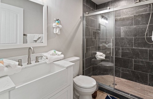 This completely renovated home away from home boasts a front yard under a beautiful magnolia tree and a wonderful backyard shared with the studio apartment. The backyard enjoys a patio, a firepit surrounded by Adirondack chairs, a gas grill for summertime cookouts, a hammock swing, and an equipment shed. This is the perfect spot to spend tranquil evenings barbecuing, roasting marshmallows, and enjoying alfresco meals.