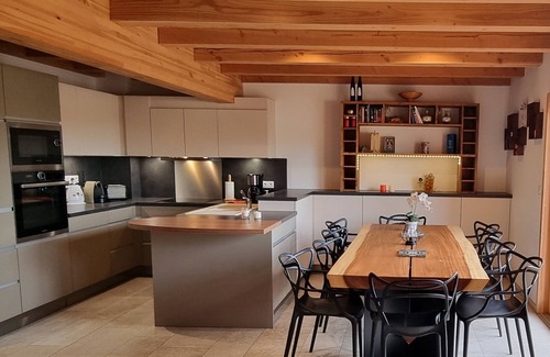 There are two fully equipped kitchens: induction hob, oven, microwave, kettle, toaster, filter and Nespresso coffee maker, citrus press, dishwasher, refrigerator + freezer, and washing machine.