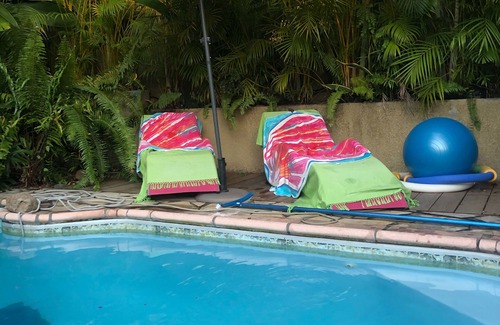 My chalet is located in lush greenery, surrounded by exuberant tropical vegetation, near a beautiful traditional Creole wooden house, at Rivière Saint-Louis, 10 minutes from Saint-Pierre and its magnificent lagoon and 15 minutes from Saint-leu where you can enjoy both the beach and your eyes raised to the sky from the spectacle of paragliders. the studio is very well equipped and decorated with care, like my passion for the decorative arts and art in general. In the garden, you can lounge by the swimming pool out of sight, and in a very intimate setting, ideal for each person looking for calm and serenity. A barbecue is also available to whet your appetite. You also have a few meters from the house many amenities, small shops, a stop in the village of the River which has kept its authentic and simple character. I can also offer you Aqua Sophro, relaxation in the pool or Janzu sessions at an additional cost. An aperitif with tasting of arranged rums will be offered to you upon your arrival, and you will have coffee, tea, butter and jam to be able to enjoy a good breakfast in peace on the first day. I remain relatively available if you need advice or other for the discovery of this wonderful island