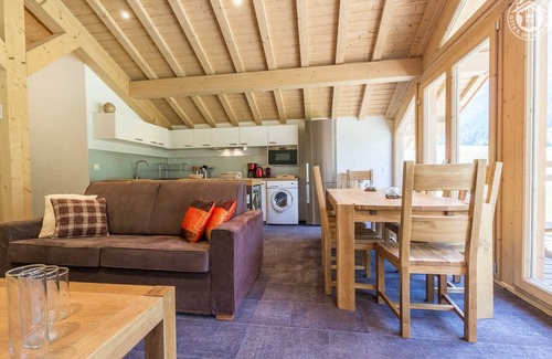 Independent inverted duplex chalet in a complex of tourist accommodation. Ground floor (entrance on the same level, PMR accessible level): living room-kitchen-lounge with balcony-terrace, 1 bedroom (1 double bed 160x200cm), 1 shower room (PMR accessible). On the floor below: 2 bedrooms (1 double bed 140x190cm / 1 double bed 140x190cm) with their private bathrooms (shower + WC) and balcony, 1 bedroom (2 bunk beds 90x190cm) with its private bathroom (shower + WC). Beds made (winter only) + sheets included + household linen included. Electric shoe dryer. Ski Peisey-Nancroix Paradiski area 2km away. Cross-country skiing 2 km. In winter only: access to the common wellness area (sauna and spa) Renovated chalet 2 km from the link to the vast Paradiski ski area. Charming typical village. Great comfort. Warm contemporary mountain character. Very cozy. Personalized luxury services (dedicated driver).