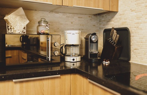 The open kitchen on the ground floor is fully equipped and leaves nothing to be desired. With the refrigerator, dishwasher, stove, oven, coffee machine, microwave, and toaster, you have everything you need for a cooking evening during your vacation to pamper your loved ones.