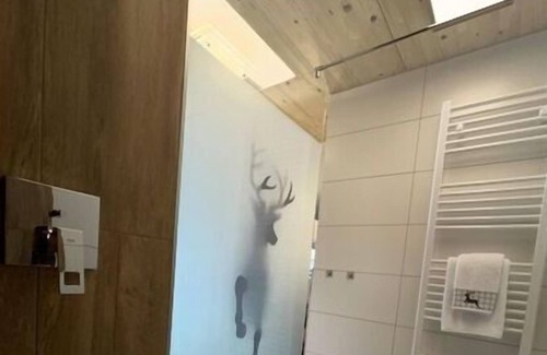 New building 2021. Due to the modern, open architecture with a large window front, you can enjoy the great, unobstructed view of nature. The terrace lying on the south side invites you to relax and linger. On the ground floor is the kitchen, the housekeeping room and the guests toilet. The open living/dining area extends over the entire width of the house. Lovingly selected furniture & accessories ensure a feel -good atmosphere. The sleeping area (double bed 1.8 x 2.0 m) is on the gallery and invites you to cuddle and dream. The open bathroom with toilet is right next door. An open glass shower and a river basin round off the ambience. The complete chalet has underfloor heating. Bicycles can be placed in the basement - accessible via the outer staircase.