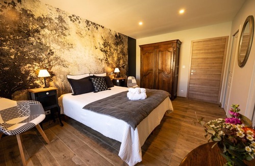 Chambre d'hôtes Le Rucher des Combes - Black Périgord room is located in Fleurac. Chambre d'hôtes Le Rucher des Combes - Black Périgord room provides accommodation, featuring Wellness Facilities, Fireplace/Heating, Child Friendly, among other amenities. This Bed & Breakfast features Wellness Facilities, Fireplace/Heating, Child Friendly, to make your stay a comfortable one.