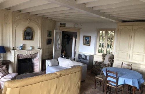Entrance, living room (tiled floor and wood paneling) with bay windows on the south facing garden, (gas fire, fridge, oven, microwave, coffee maker, toaster, washing machine). Upstairs two bedrooms (one double bed in one room and two single beds in the other, cot). bathroom with bath, wc and washbasin. Extra sofa bed in the living room. Nespresso coffee maker. Large flat screen TV with freebox TV, Internet access. Neat decoration.