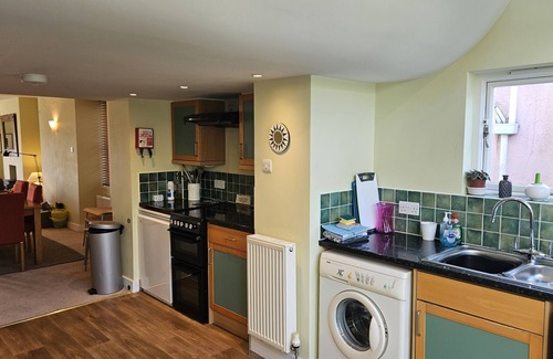 Ground floor: Open plan living, kitchen and dining room, Bay window with fantastic views, comfortable chairs and sofas, dining table and chairs, fully fitted kitchen with units and appliances and French doors that open to the garden. Downstairs shower room with WC and hand basin. Stairs lead to: